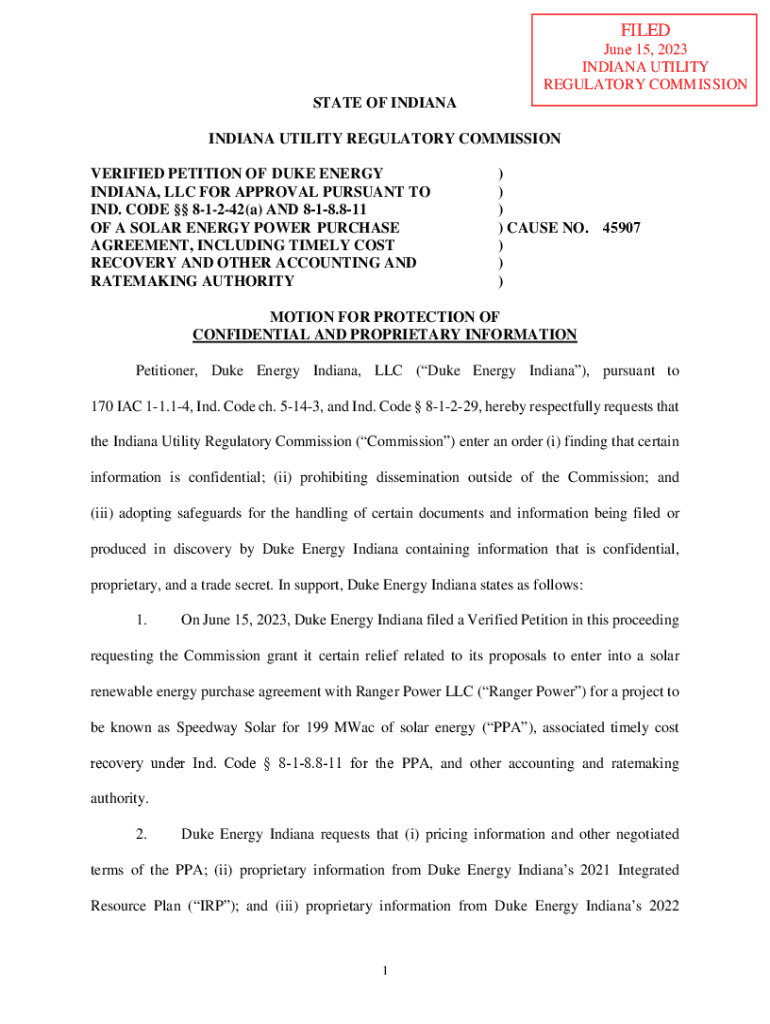 Get the free Verified Petition of Duke Energy Indiana, Llc for Approval Pursuant to Ind. Code §§ ...
