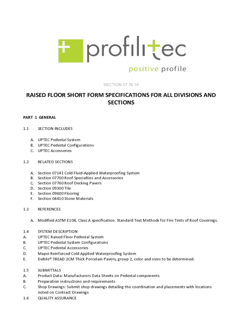 Get the free Raised Floor Short Form Specifications for All Divisions and Sections
