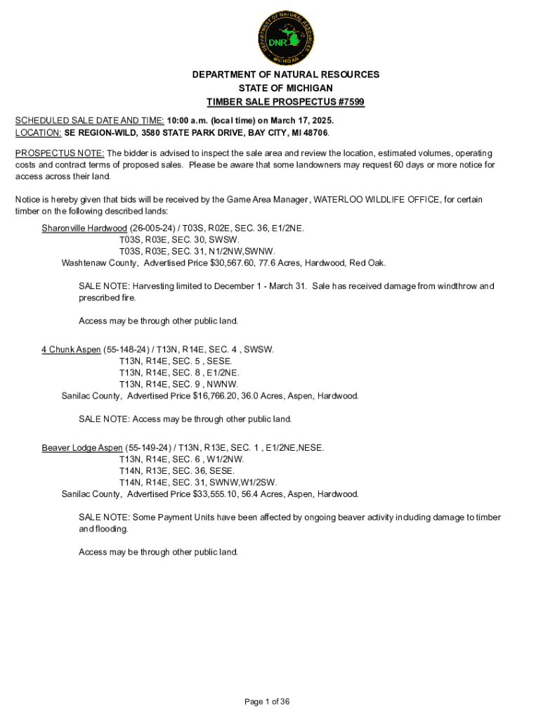 Fill out your timber sale prospectus 7599 online with pdfFiller!