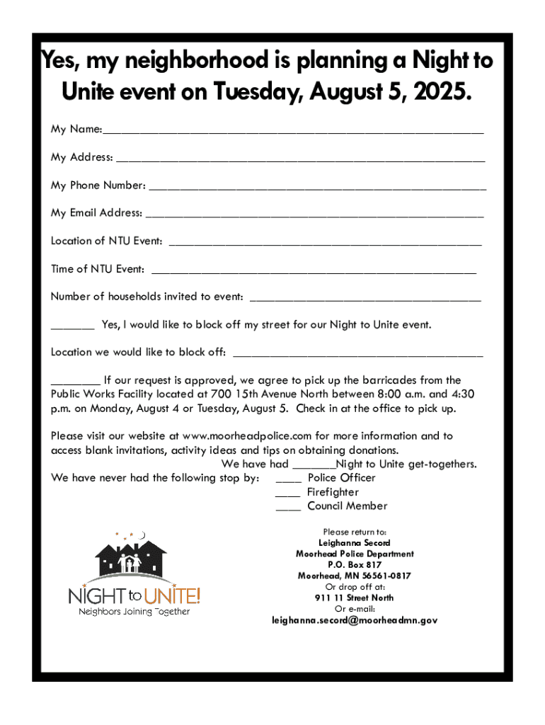 Fill out your night to unite event online with pdfFiller!