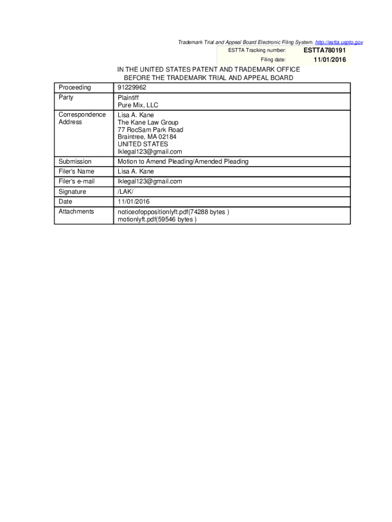 Get the free Notice of Opposition