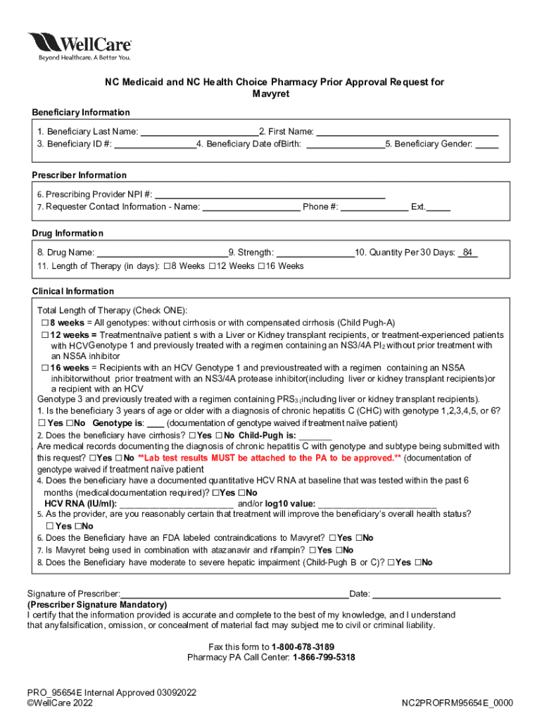 Get the free Nc Medicaid and Nc Health Choice Pharmacy Prior Approval Request for Mavyret