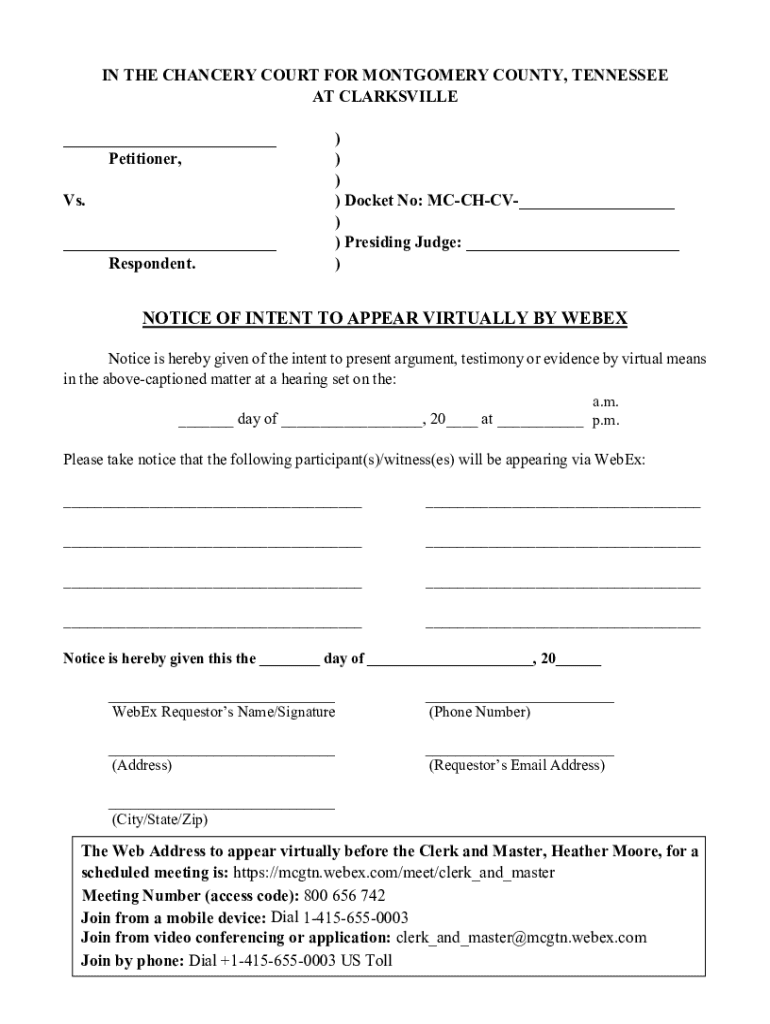 Get the free Notice of Intent to Appear Virtually by Webex