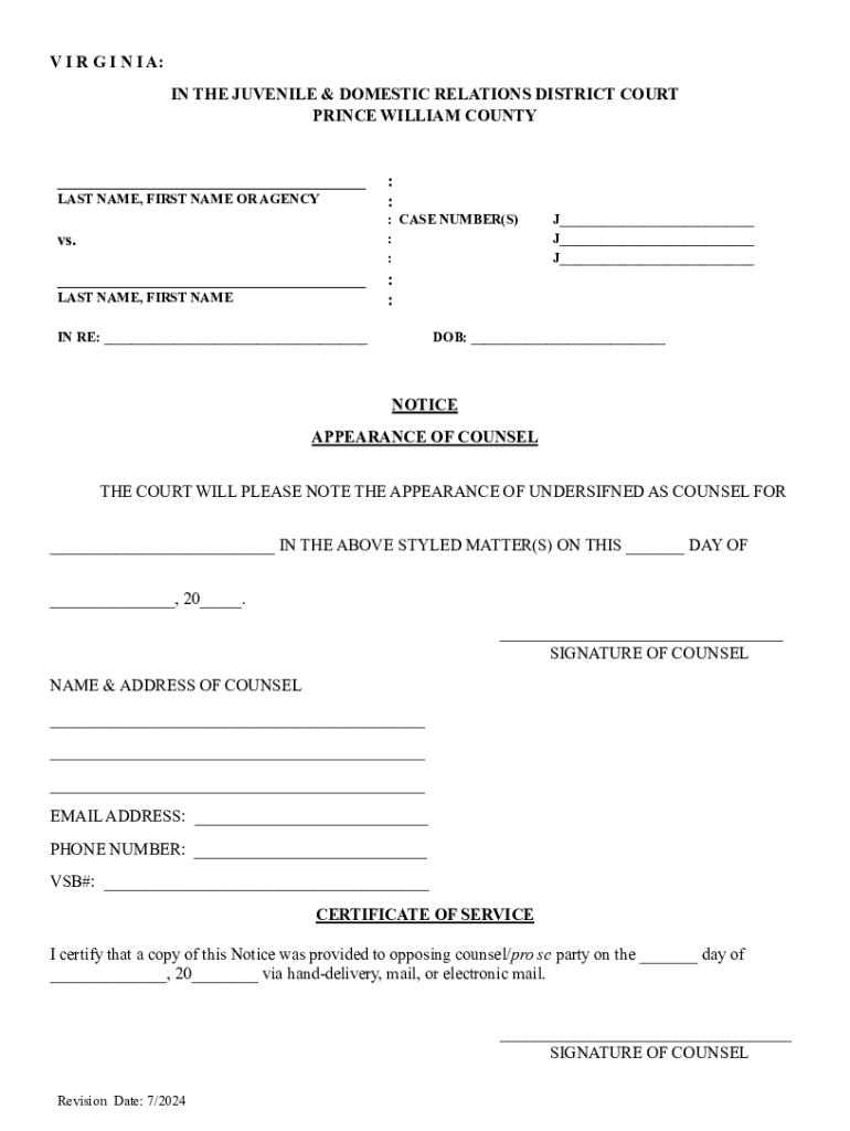 VA Notice Appearance of Counsel - Prince William County 2024-2026 free printable template