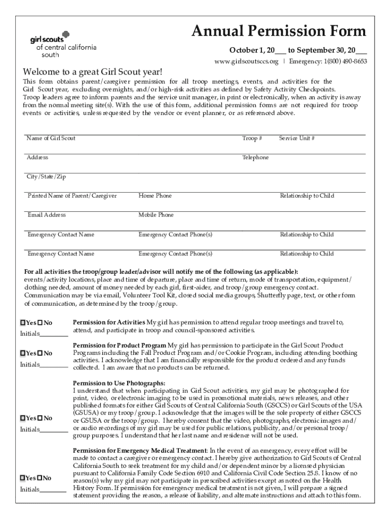 Get the free Annual Permission Form