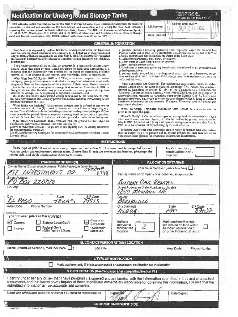 How to fill out notification for underground storage