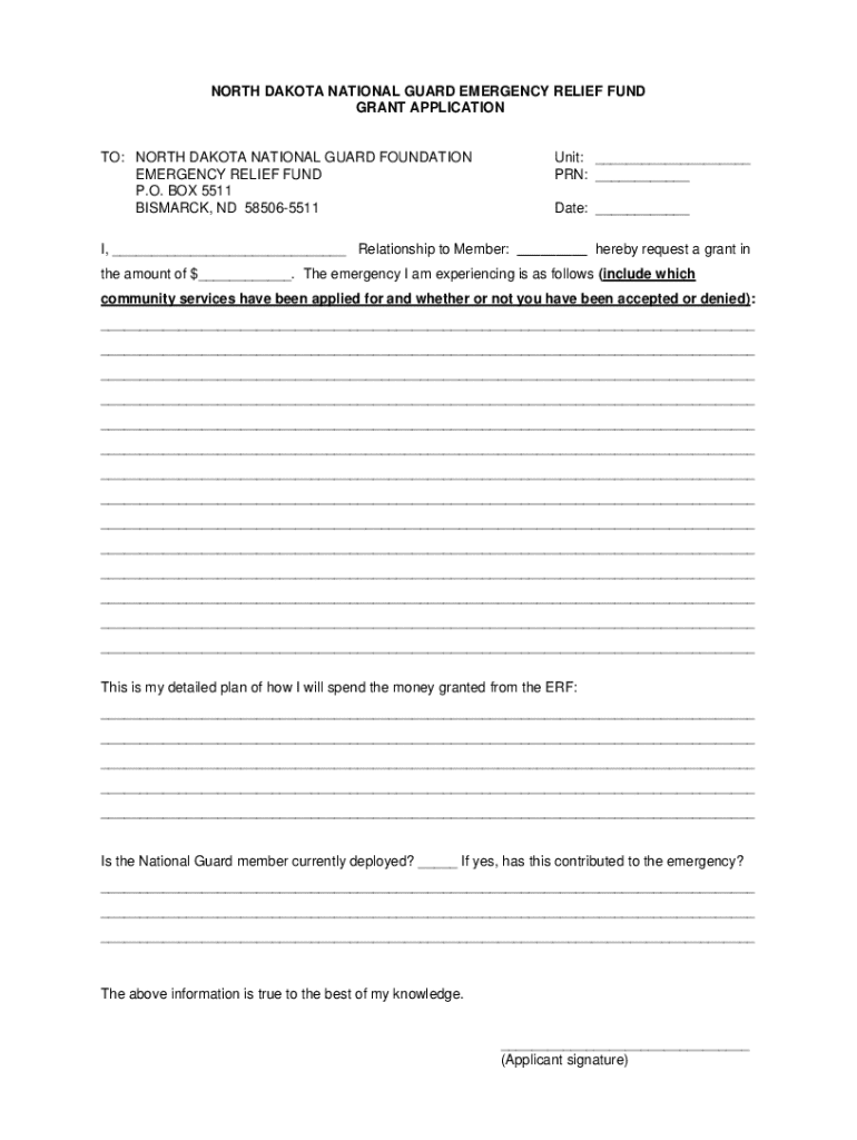Get the free North Dakota National Guard Emergency Relief Fund Grant Application