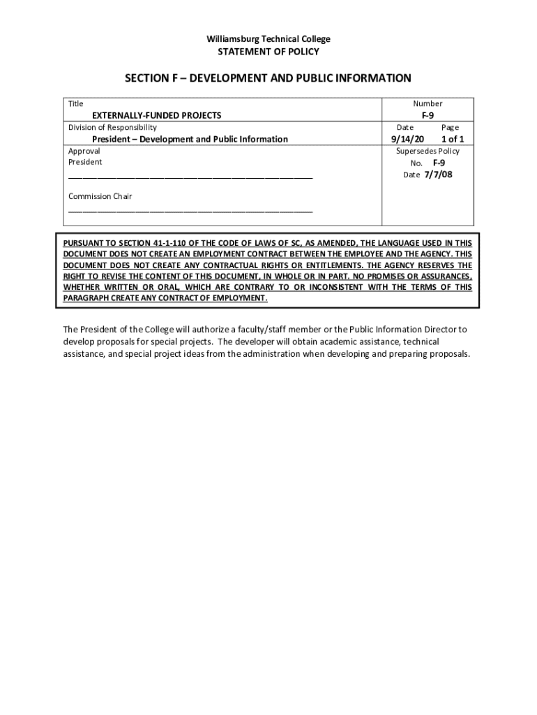 Get the free Statement of Policy - Externally-funded Projects