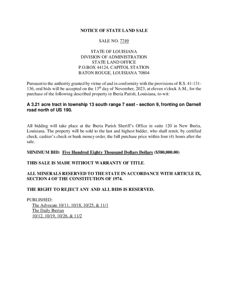 Get the free Notice of State Land Sale - doa louisiana