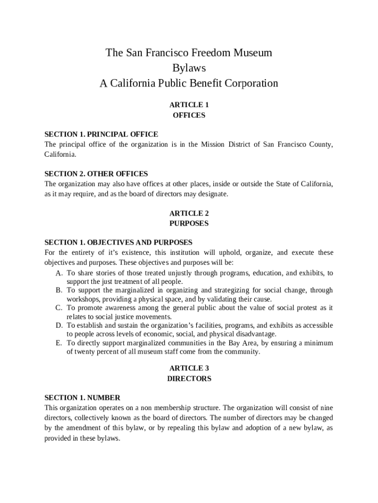 What is Bylaws of the San Francisco Freedom Museum Form?