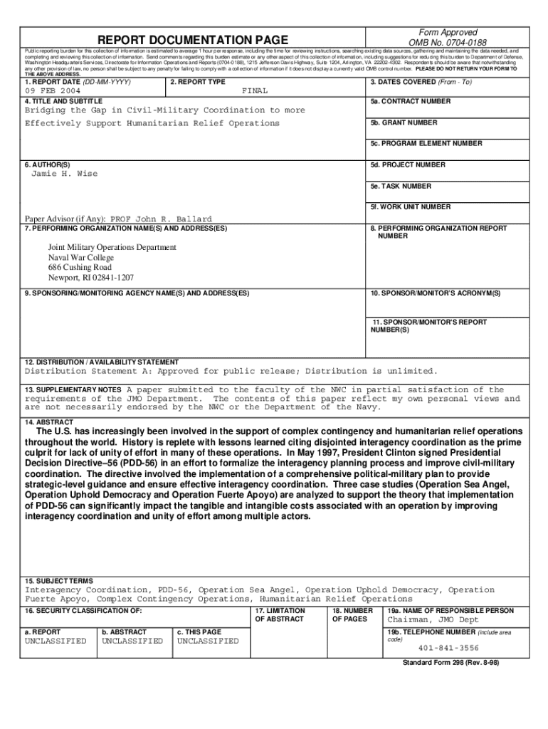 Get the free Bridging the Gap in Civil-military Coordination to More Effectively Support Humanita...