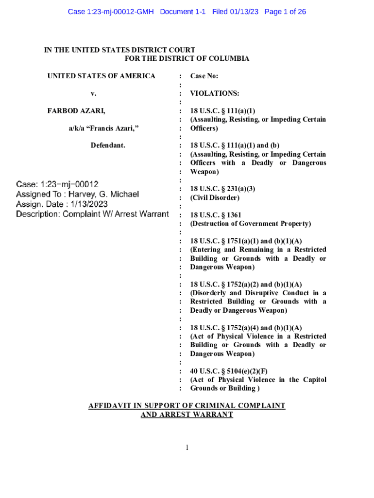 Get the free Affidavit in Support of Criminal Complaint and Arrest Warrant