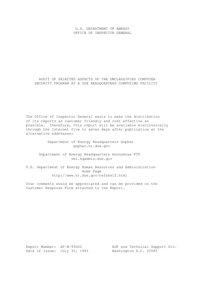Get the free Audit of Selected Aspects of the Unclassified Computer Security Program at a Doe Hea...