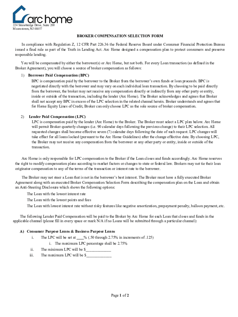 Get the free Broker Compensation Selection Form