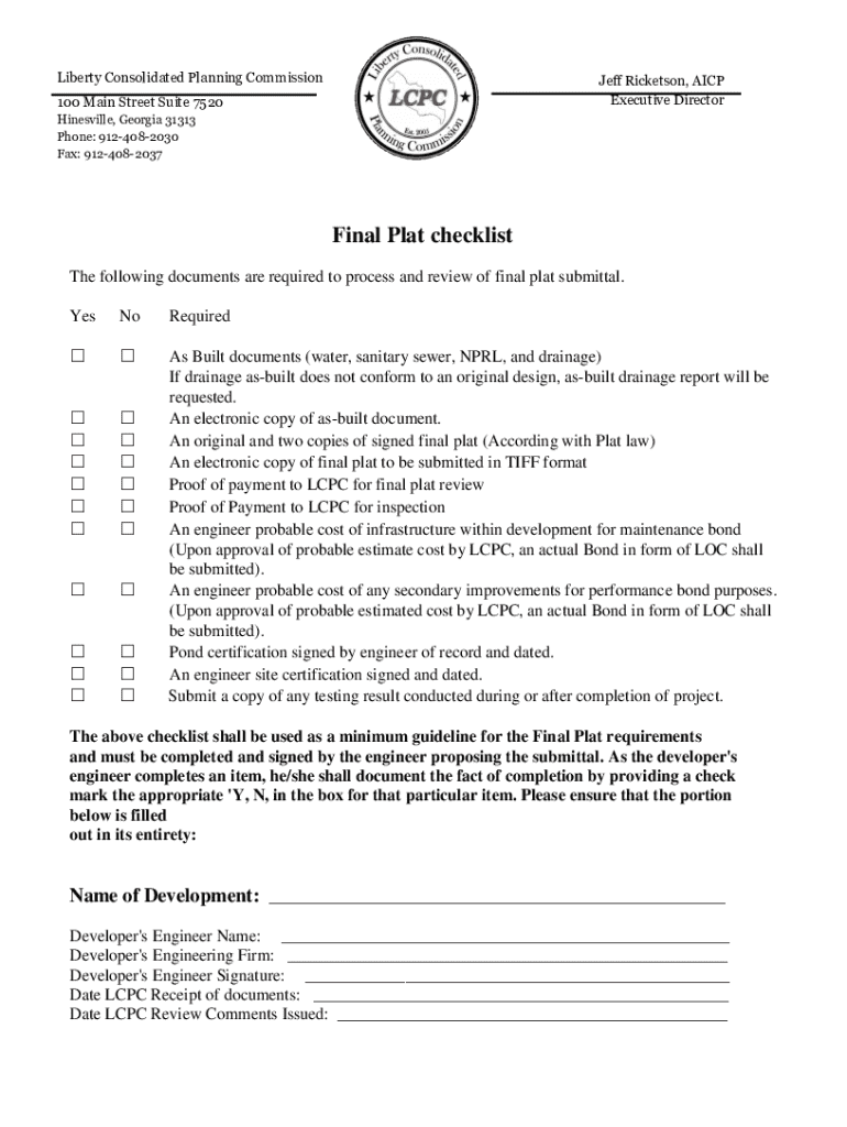 Get the free Final Plat Checklist
