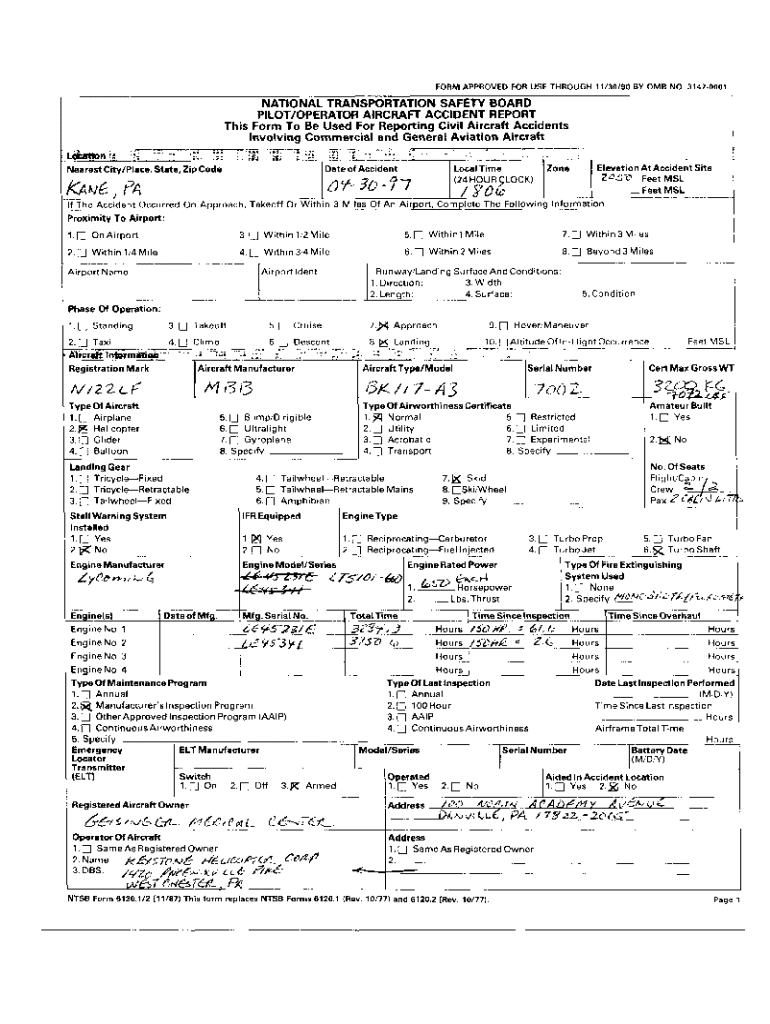 The NTSB Form consists of several key components that are crucial for accurate reporting. Each section is designed to capture essential information about the accident, those involved, and relevant witnesses. Understanding these components helps ensure that the form is filled out correctly.