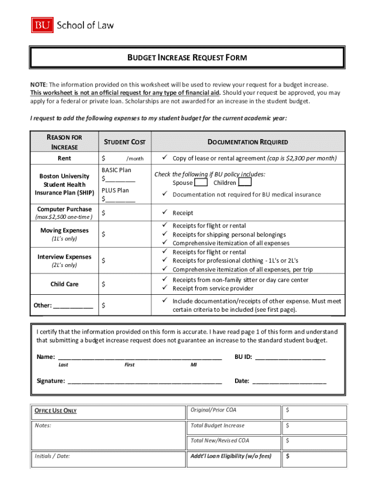 Get the free Budget Increase Request Form