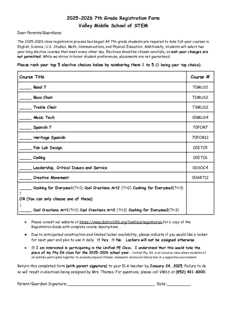 The 7th grade registration form is an essential document for transitioning students to middle school, marking a significant milestone in their educational journey. Properly completing this form is crucial not only for enrollment but also for ensuring students are placed in the appropriate academic programs. Timely registration plays a pivotal role in the planning of resources and classroom assignments by school administrators.