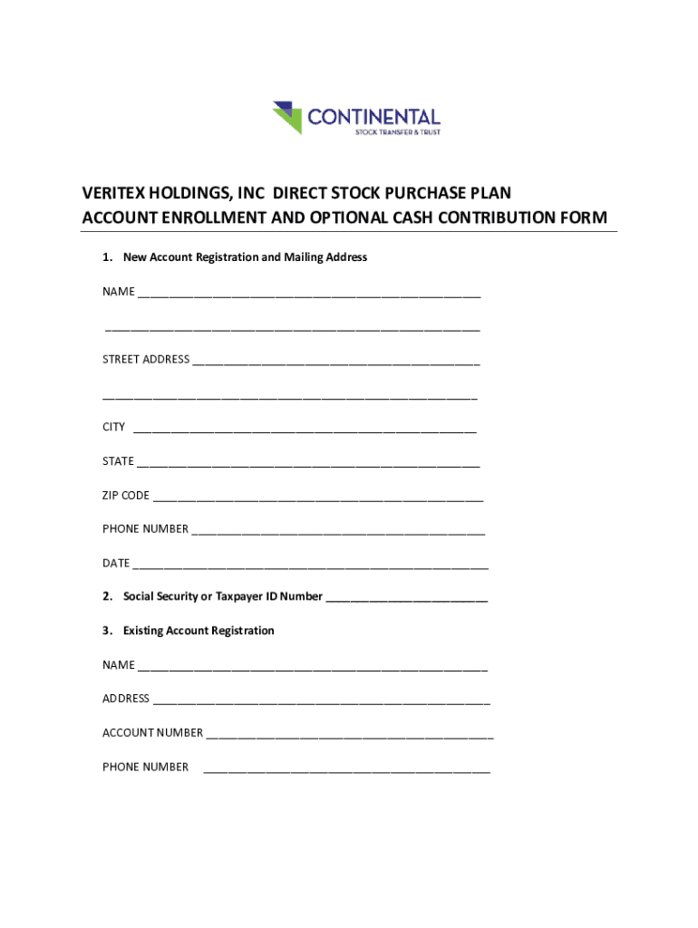 Get the free Veritex Holdings, Inc Direct Stock Purchase Plan Account Enrollment and Optional Cas...