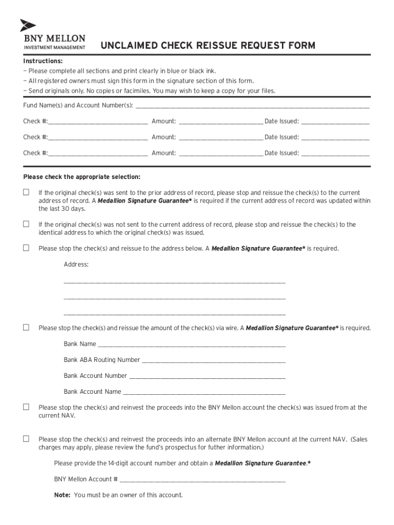 How to fill out unclaimed check reissue request