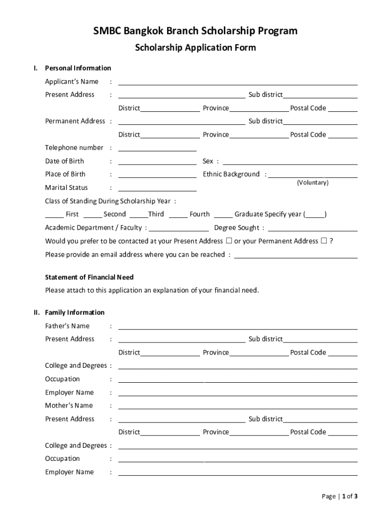 Get the free Smbc Bangkok Branch Scholarship Program Scholarship Application Form