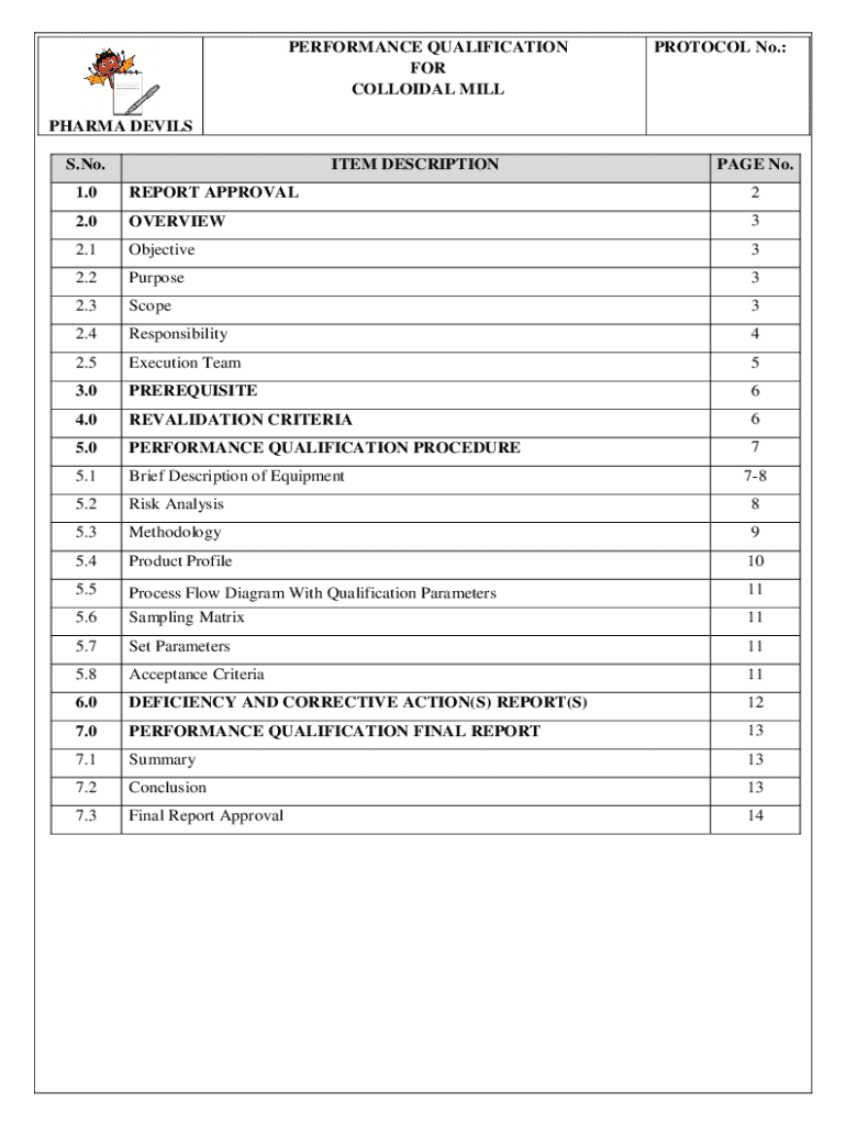 Get the free Performance Qualification for Colloidal Mill
