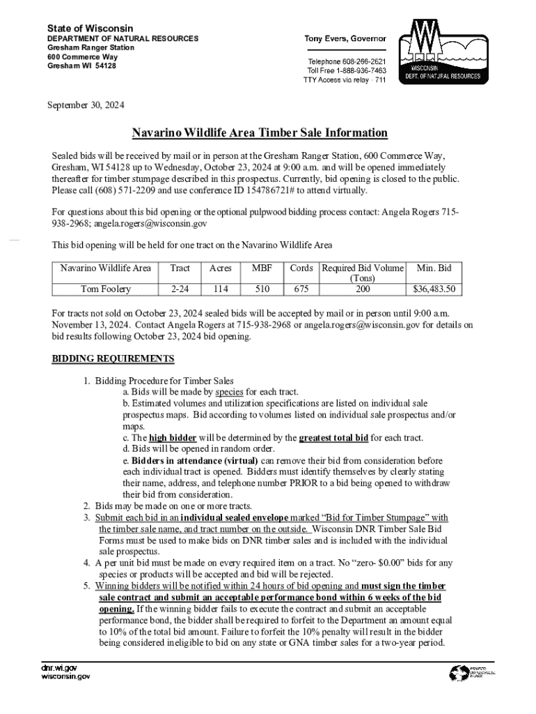 Get the free Navarino Wildlife Area Timber Sale Information - dnr wisconsin