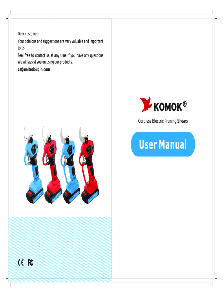 This user manual provides comprehensive instructions for the use, maintenance, and warranty information for the KOMOK electric pruning shears.