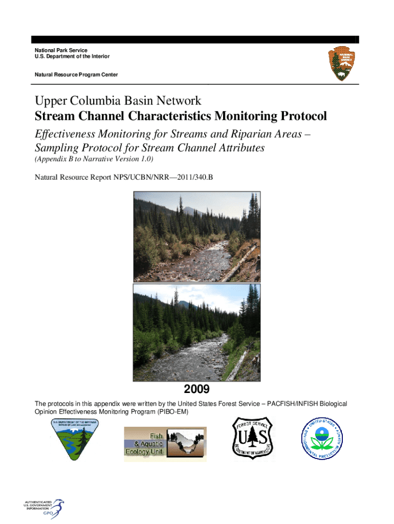This protocol outlines the methods for monitoring stream channel characteristics and assessing the effectiveness of management activities within the Upper Columbia Basin Network.