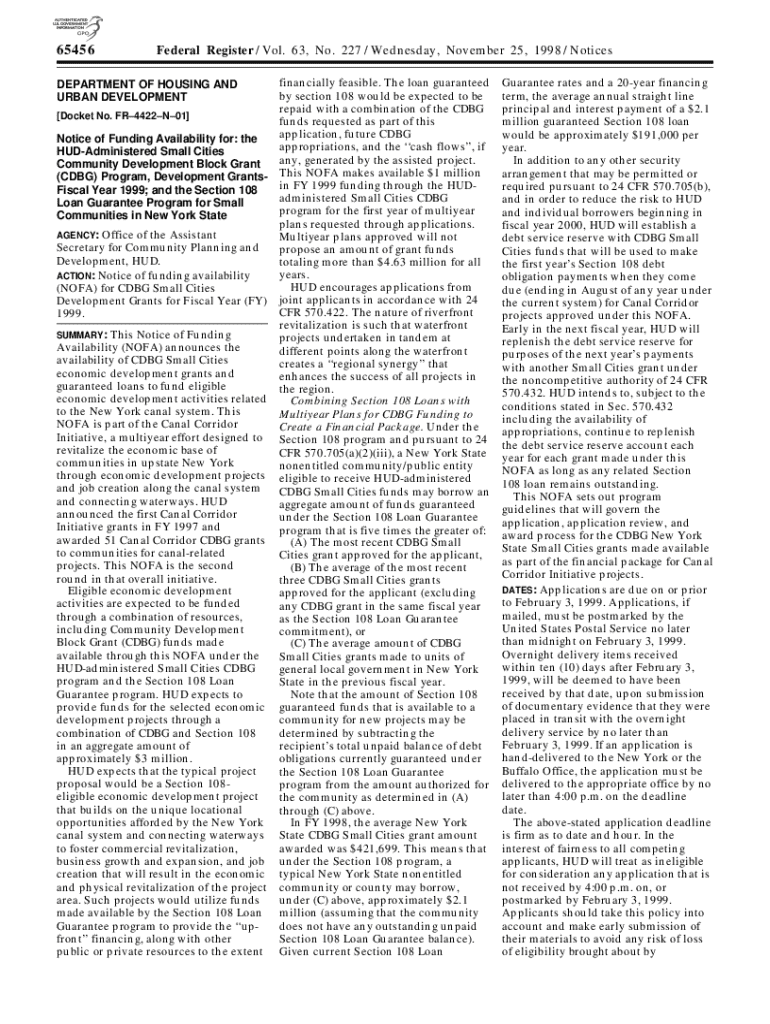 Get the free Notice of Funding Availability for Cdbg Program Fy 1999
