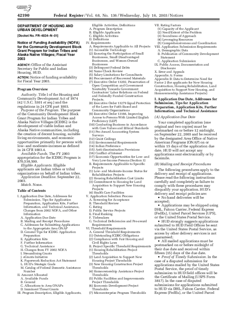 Get the free Notice of Funding Availability (nofa) for the Community Development Block Grant Prog...