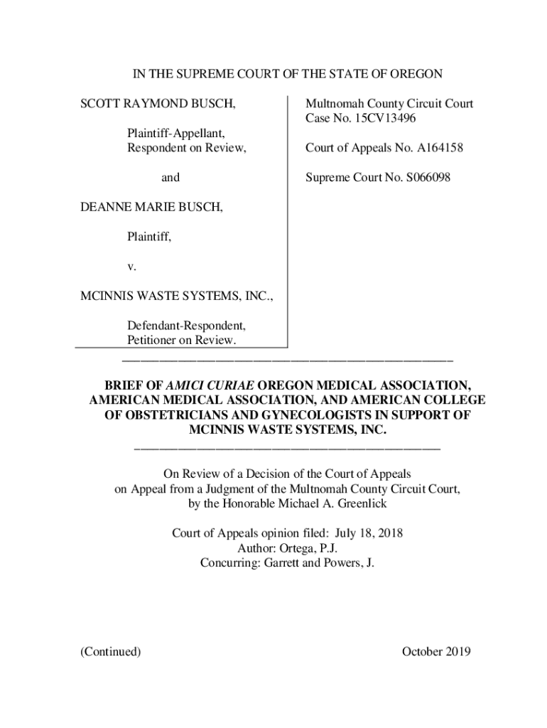 Get the free Brief of Amici Curiae Oregon Medical Association, American Medical Association, and ...