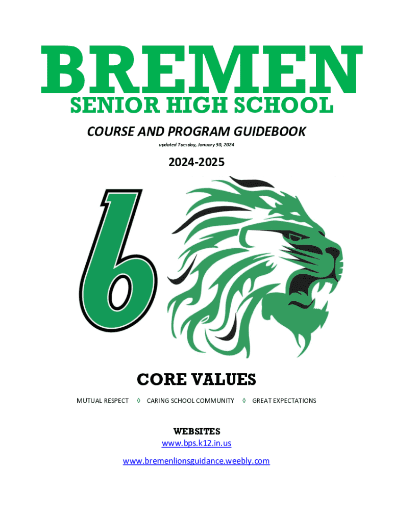 Get the free Bremen Senior High School Course and Program Guidebook 2024-2025