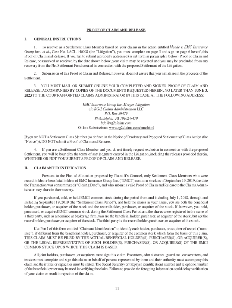 Get the free Proof of Claim and Release