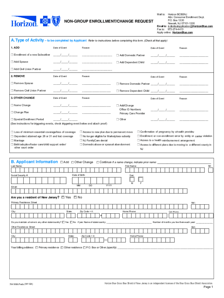 Get the free Non-group Enrollment/change Request
