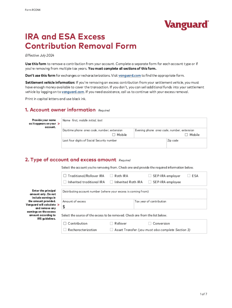 Get the free Ira and Esa Excess Contribution Removal Form