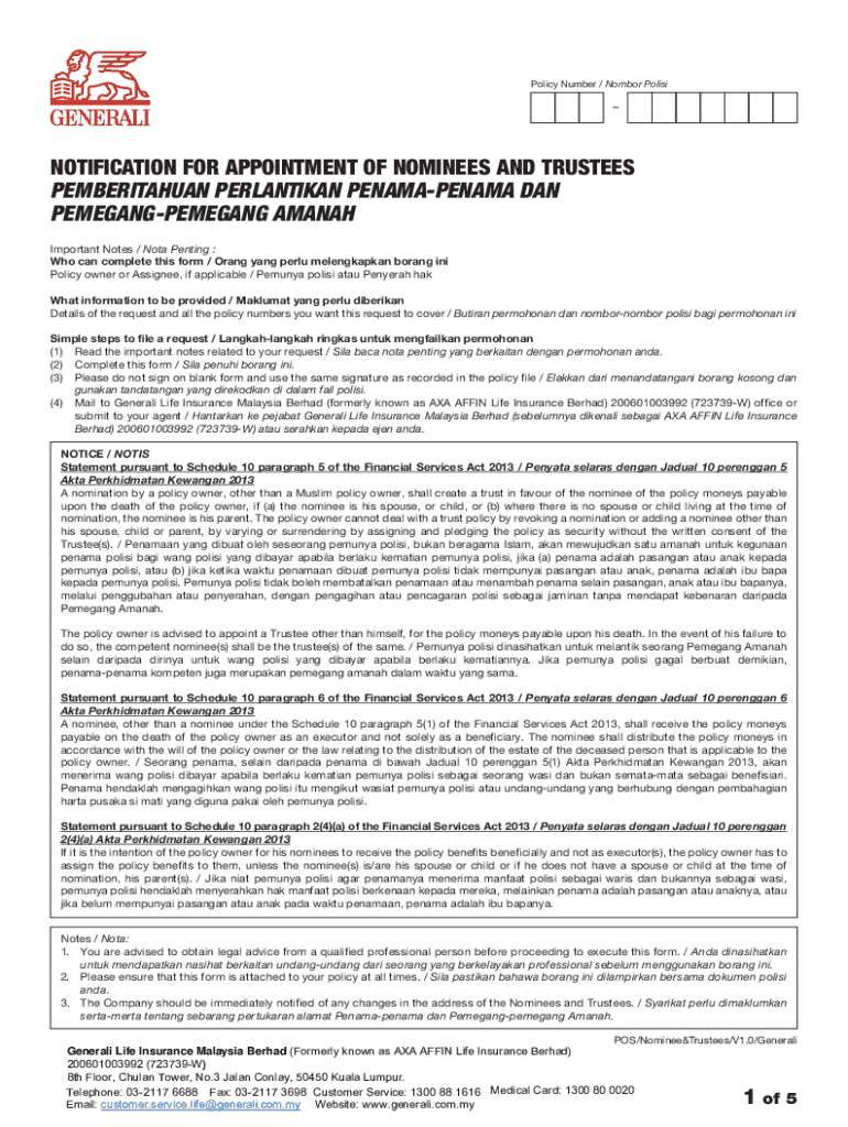 Get the free Notification for Appointment of Nominees and Trustees