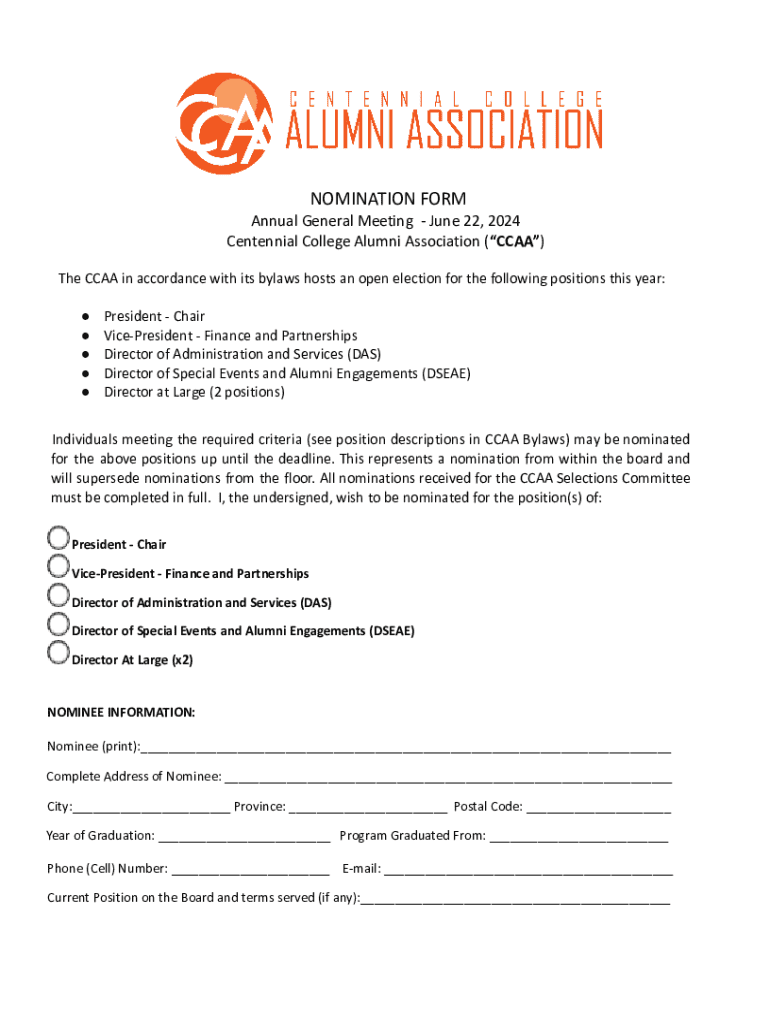 An effective nomination form must encompass various essential elements to ensure it gathers all necessary information at one go. Firstly, it should have personal information fields that capture the nominee's name, contact information, and relevant background details. Candidate details should also include any milestones that justify their nominations.