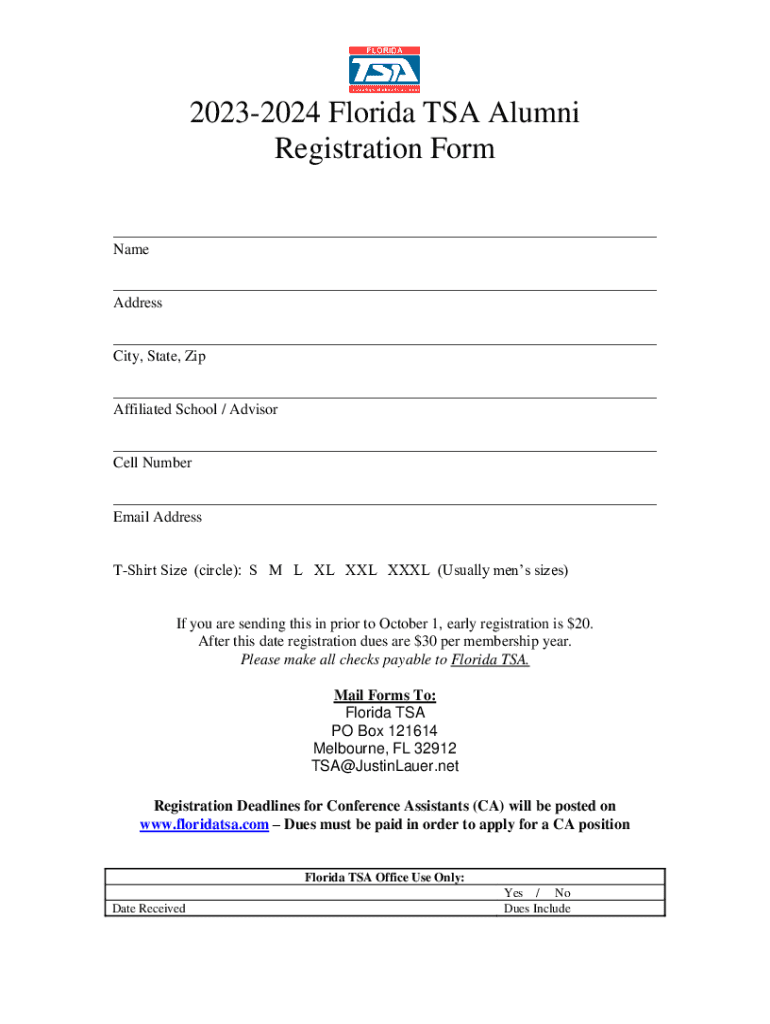 Get the free 2023-2024 Florida Tsa Alumni Registration Form