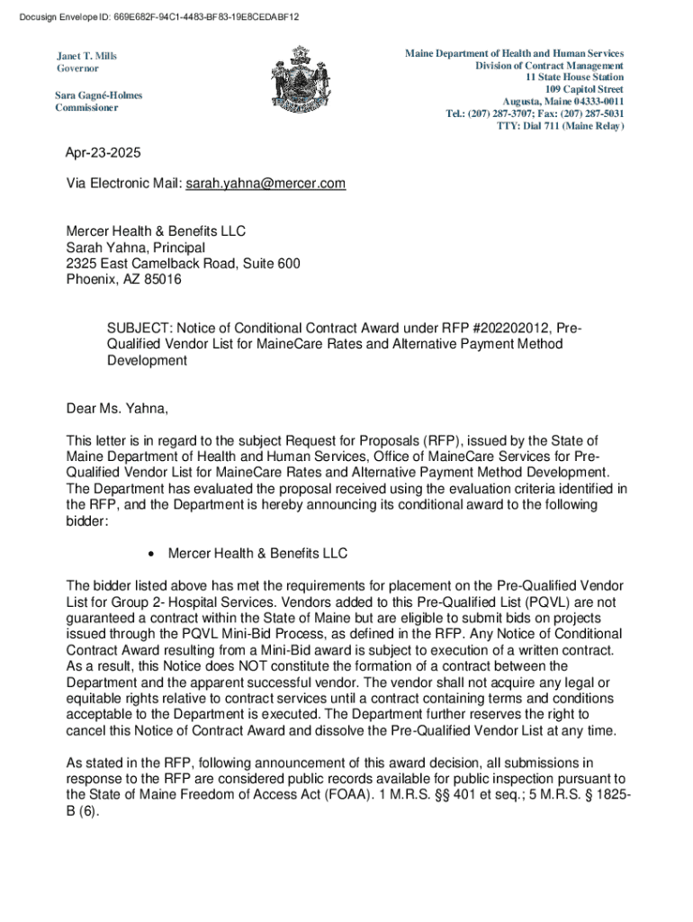 Get the free Notice of Conditional Contract Award Under Rfp #202202012