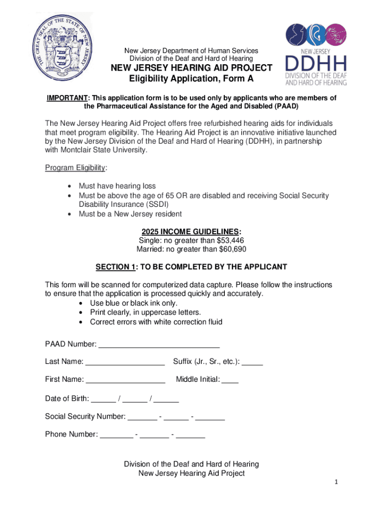 Get the free New Jersey Hearing Aid Project Eligibility Application, Form a