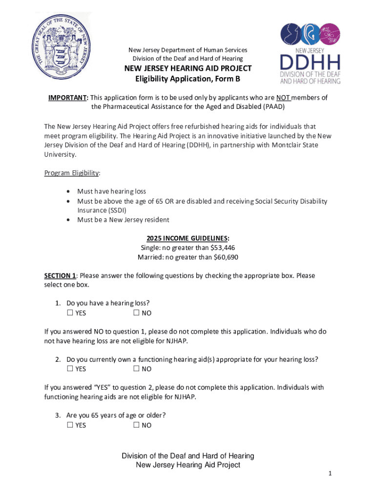 Get the free New Jersey Hearing Aid Project Eligibility Application, Form B