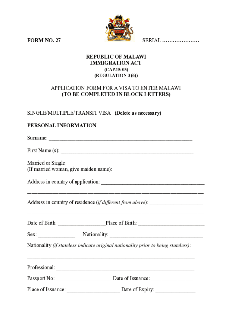 MW Application Form for a Visa to Enter Malawi Form Versions
