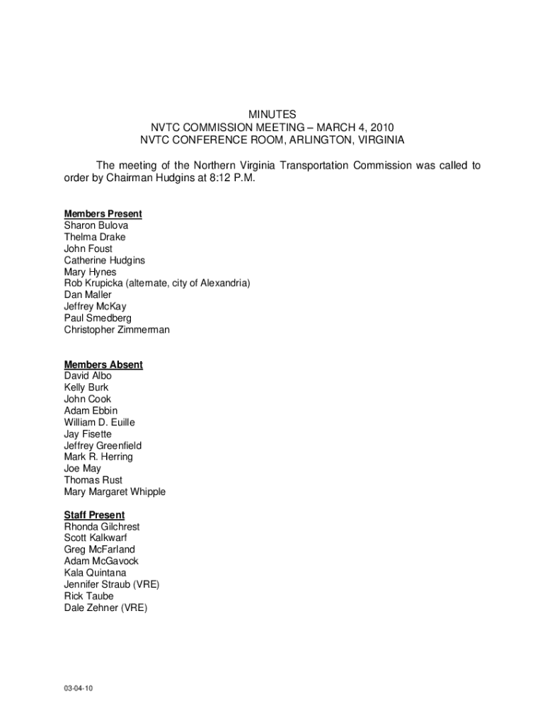 Get the free Nvtc Commission Meeting Minutes - March 4, 2010