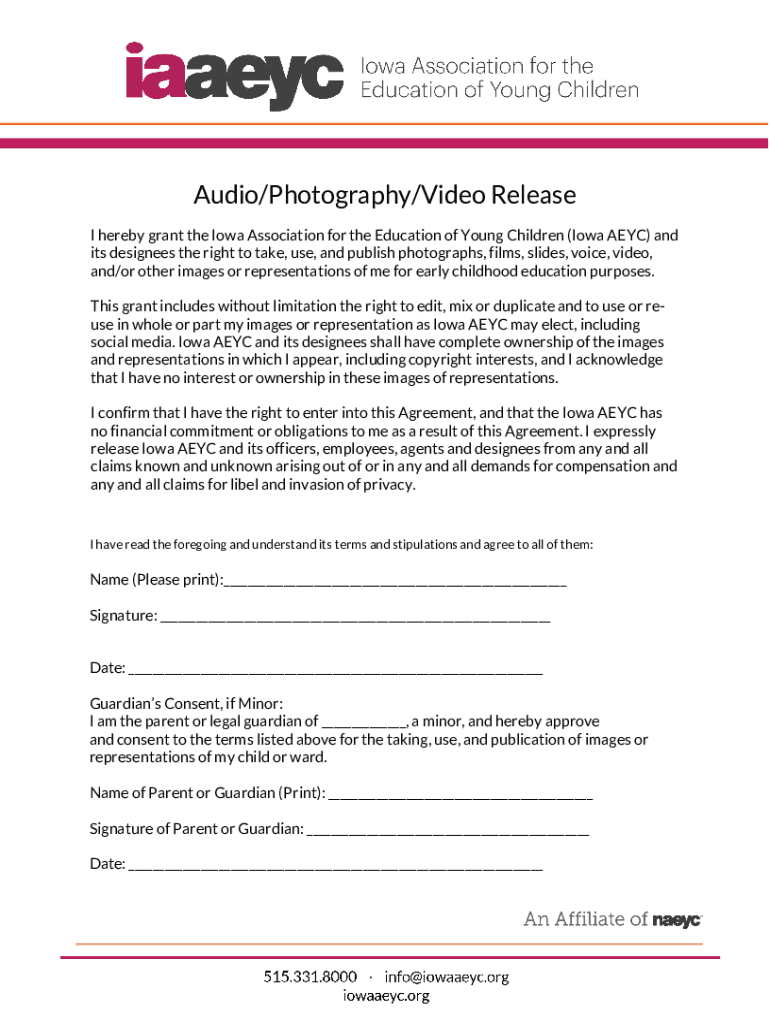 Get the free Audio/photography/video Release