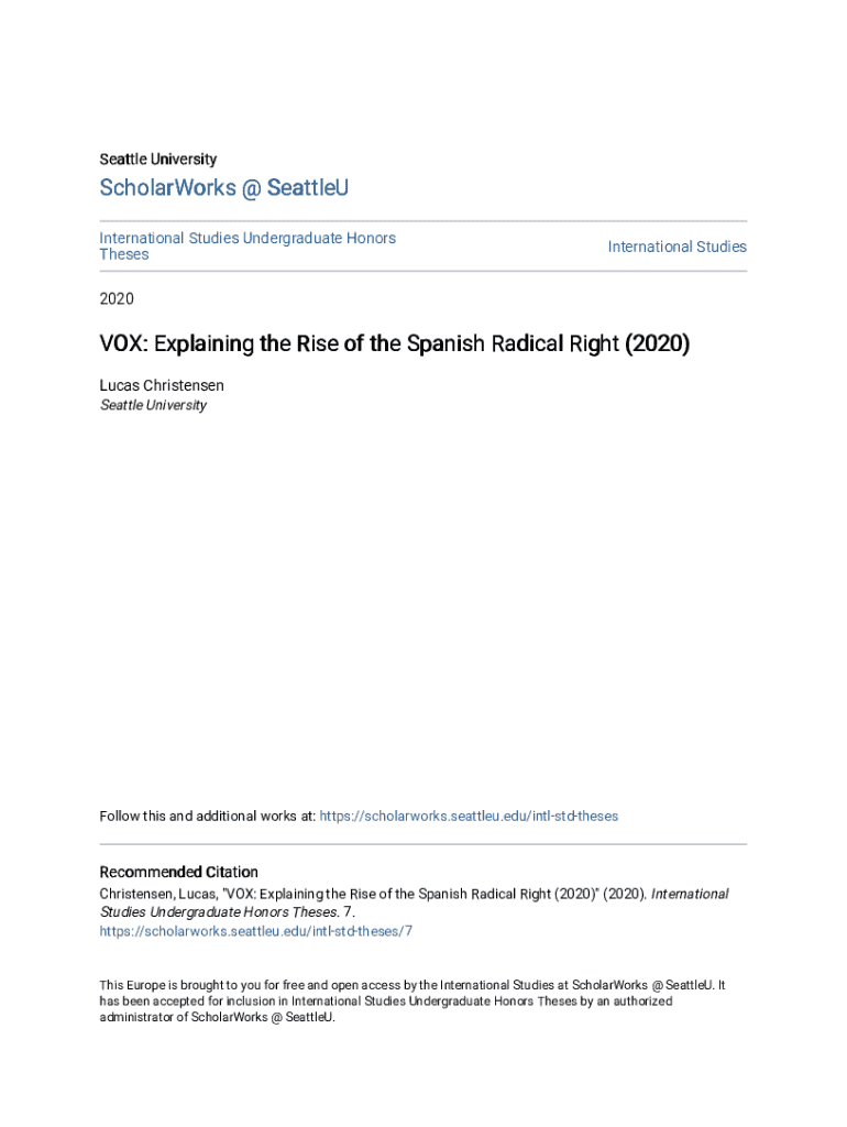 Get the free Vox: Explaining the Rise of the Spanish Radical Right