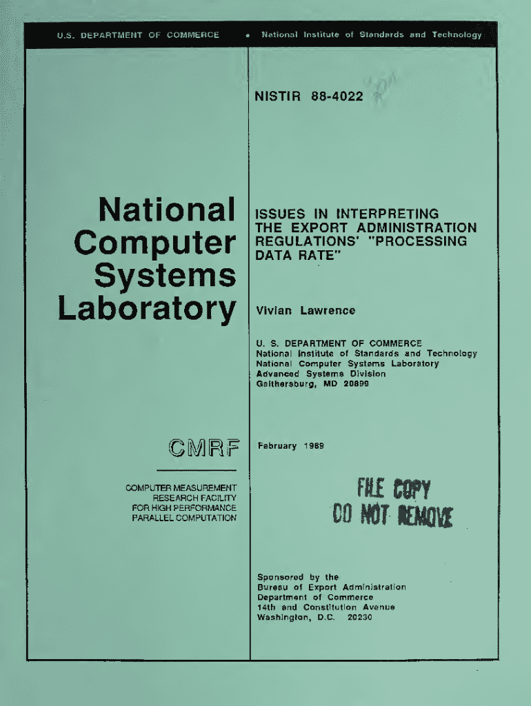 This document discusses the Processing Data Rate (PDR) as a criterion for controlling the export of computer systems, addressing the difficulties in defining and interpreting these standards across