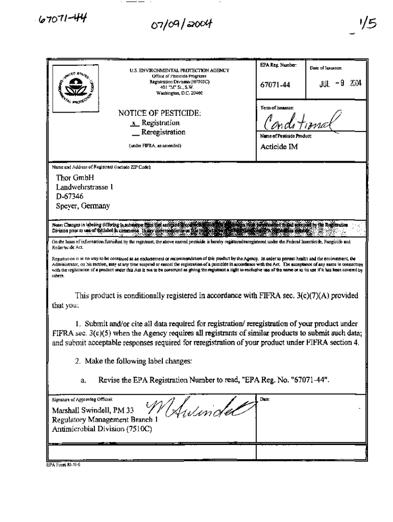 Get the free Notice of Pesticide Registration