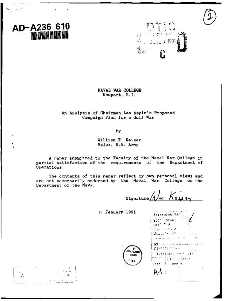 Get the free an Analysis of Chairman Les Aspin's Proposed Campaign Plan for a Gulf War