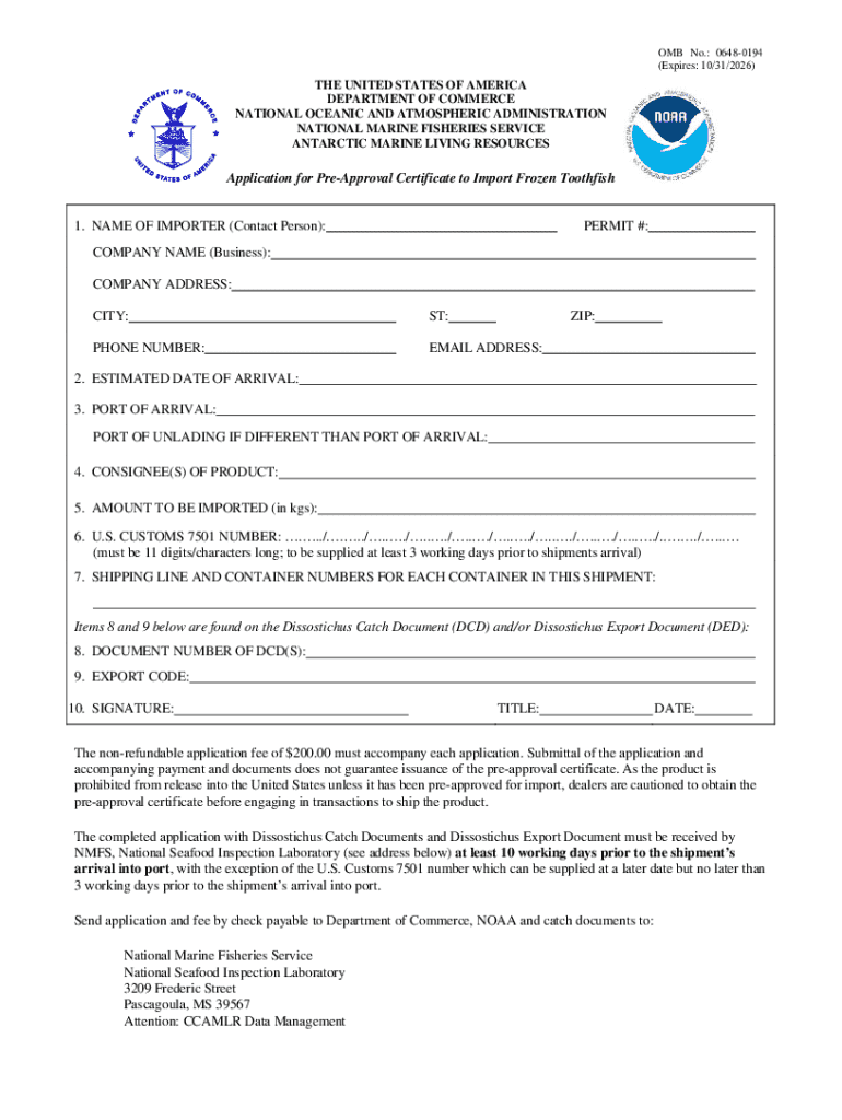 Get the free Application for Pre-approval Certificate to Import Frozen Toothfish